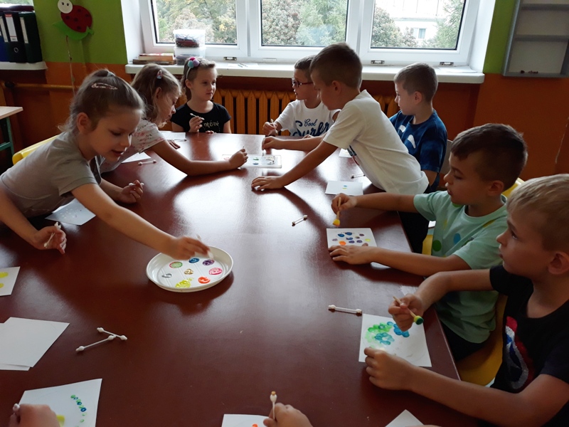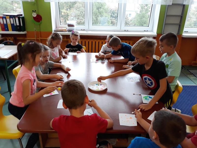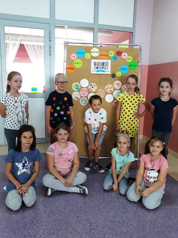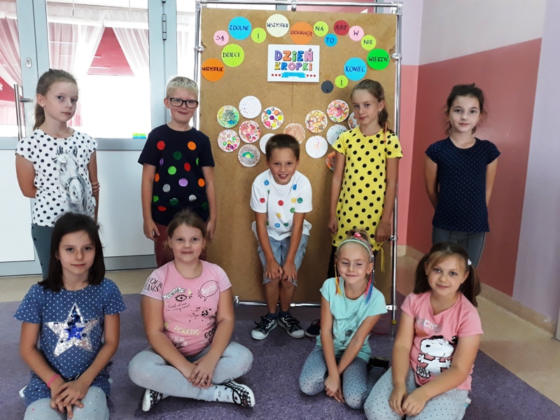 15-tego września na całym świecie obchodzony jest MIĘDZYNARODOWY DZIEŃ KROPKI. Zgodnie z jego przesłaniem każde dziecko ma w sobie ukryty talent i trzeba je tylko odpowiednio zachęcić, aby się on objawił. Jest to święto kreatywności, odwagi i zabawy. Uczniowie i nauczyciele na całym świecie organizują w tym dniu wiele działań, które pomagają dzieciom odkryć talenty, poznać swoje mocne strony i je zaprezentować. Motywem przewodnim jest zawsze kropka. Nasza świetlica już drugi raz przyłączyła się do akcji. Podczas zajęć dzieci oglądnęły filmik pt. „The Dot” opowiadający o kropce, która zmieniła świat małej Vashti, albo o Vashti, która dzięki kropce uwierzyła w siebie. Dzieci uczestniczyły w zajęciach plastycznych, podczas których malowały farbami i pisakami, tworzyły kompozycje z kolorowych kółek, a tym samym stworzyły niepowtarzalne kropkowe dzieła sztuki, które teraz można podziwiać na świetlicowej wystawie. Uczniowie słuchali piosenki przygotowanej specjalnie na Święto Kropki i wymyślali słowa na literę „O”. W tym dniu dzieci miały okazję nie tylko opowiedzieć o swoich talentach, ale przede wszystkim przekonać się, że je posiadają.