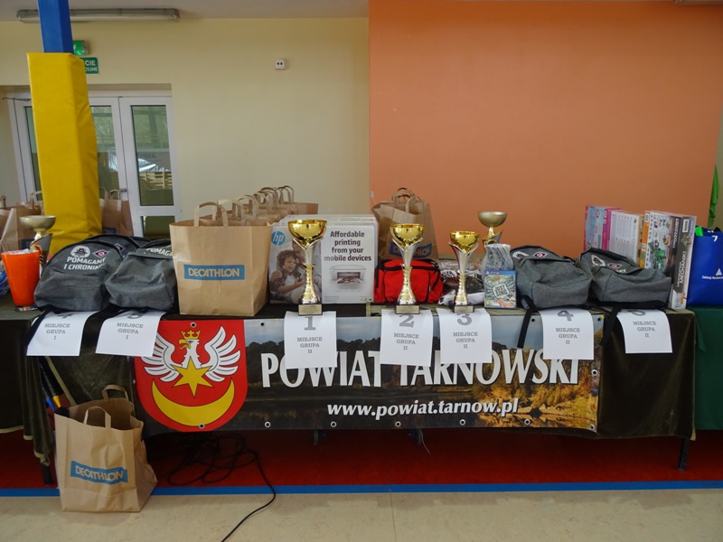W konkurencji „Pierwsza pomoc przedmedyczna” nasi uczniowie uzyskali maksymalną ilość punktów, natomiast ostatecznie zajęli drużynowo VII miejsce w II grupie wiekowej –  nagrodami były upominki dla uczestników.