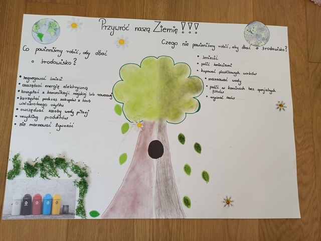 Dzień Ziemi jest świętem Naszej Planety. Jest największym ekologicznym świętem, obchodzonym od 1970 roku, w 192 krajach. W Polsce Dzień Ziemi obchodzony jest od 1990 roku. Motywem przewodnim tegorocznej edycji jest hasło: „Przywróć naszą Ziemię”. Jest to bardzo dobra okazja do promowania ekologicznych postaw, uświadamiania o problemach, które wiążą się ze zmianą klimatu. Dlatego nasza szkoła również przyłącza się do tej akcji.