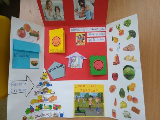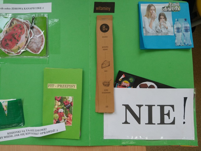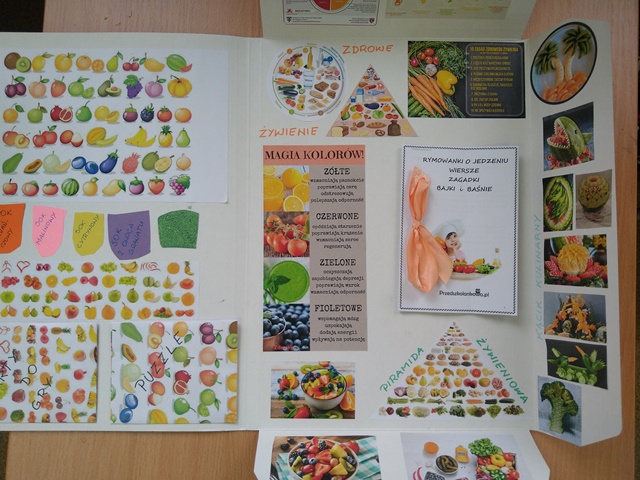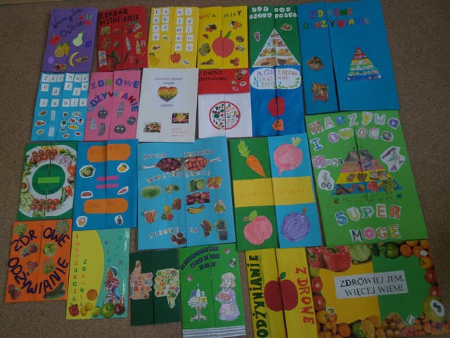 Jako podsumowanie projektu „Zdrowy, kolorowy tydzień” uczniowie wykonali LAPBOOKI dotyczące tematyki zdrowego odżywiania, zawierające wiadomości o witaminach, przepisy na zdrowe posiłki, piosenki, wierszyki, zagadki itp. Każda praca była bardzo interesująca i pomysłowa.