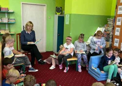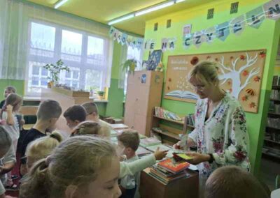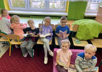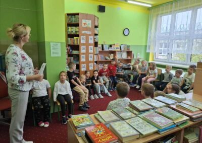 W ramach pasowania na czytelnika mali odkrywcy mieli okazję poznać pracę bibliotekarza oraz dowiedzieć się, jak funkcjonuje nasza biblioteka. Każdy z uczniów miał możliwość wypożyczenia książek, co z pewnością rozbudzi ich miłość do czytania! Zachęcamy do odkrywania magicznego świata książek!