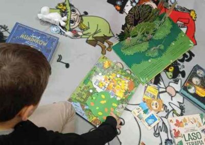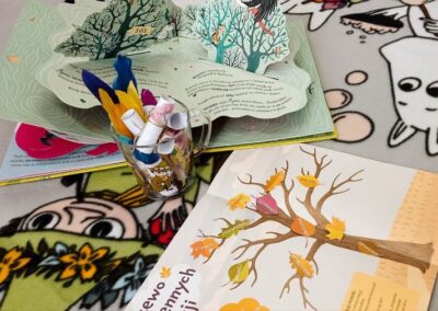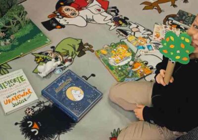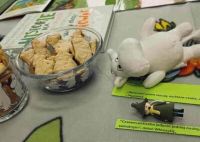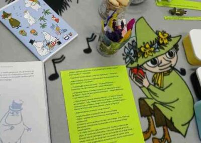 Główną inspiracją warsztatów był obchodzony w tym roku jubileusz pierwszej wydanej książki o Muminkach. Dzieci razem z postaciami z bajki poznały sposoby radzenia sobie z stresem jak również umiejętności nawiązywania dobrych relacji z innymi. Wspólne doświadczenie kontaktu z naturą, zestawione z postaciami Muminków, przypomniało, że opieka nad zdrowiem psychicznym zaczyna się od prostych, codziennych działań: zwolnienia tempa, obserwacji tego, co nas otacza, i dzielenia się tym z innymi. Spotkanie było piękną okazją do zatrzymania się, zastanowienia nad tym, jak kontakt z naturą wpływa na nasze samopoczucie i jak łatwo można odnaleźć spokój.