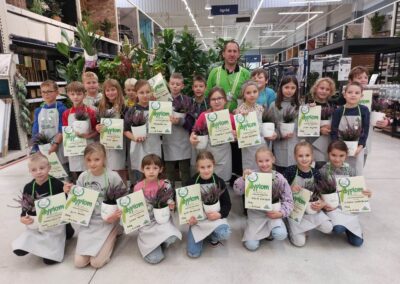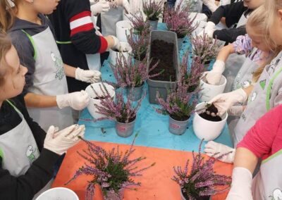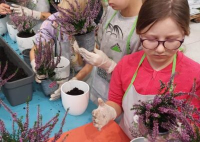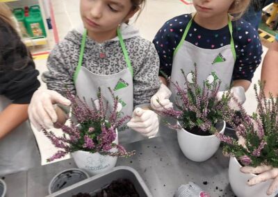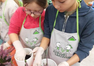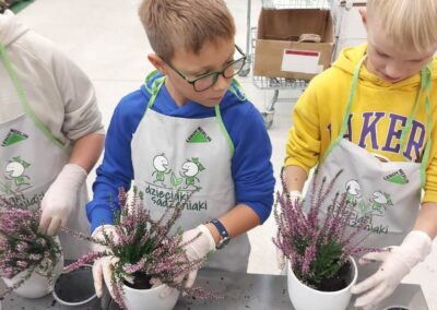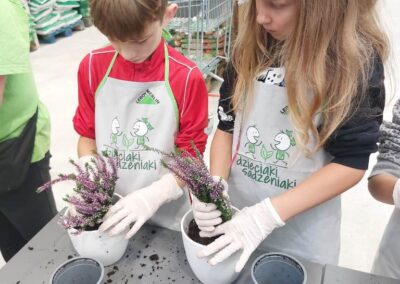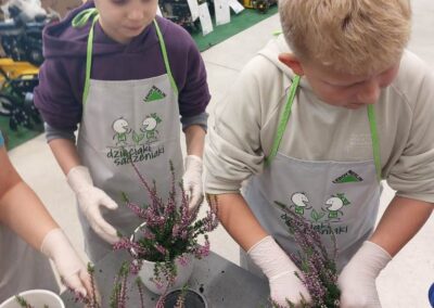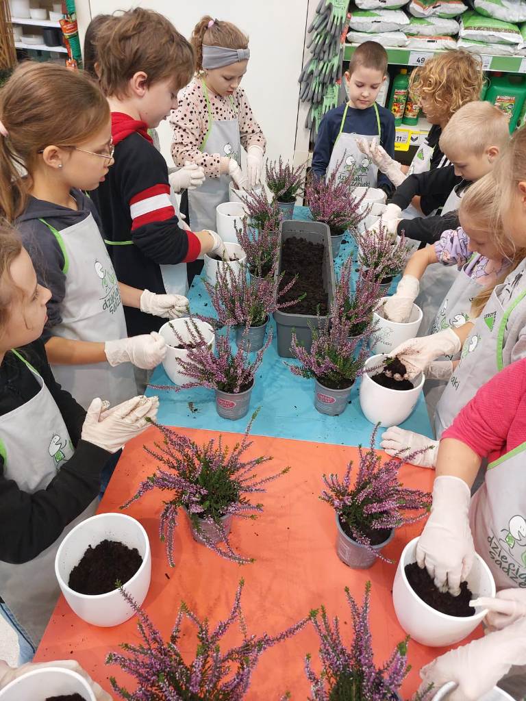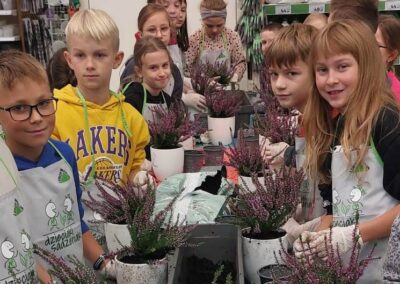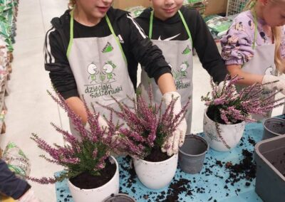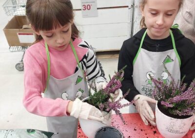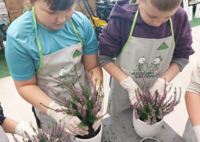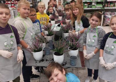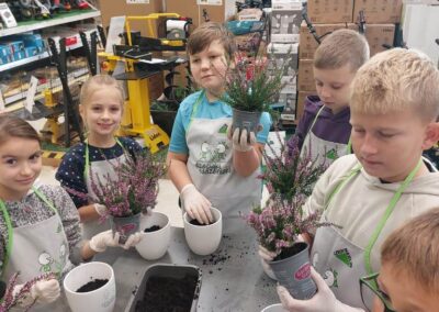 Podczas warsztatów dzieci uczyły się, jak prawidłowo sadzić i pielęgnować rośliny. Z entuzjazmem słuchały wskazówek prowadzących, poznawały podstawy ogrodnictwa i dowiedziały się, jak ważną rolę pełnią rośliny w naszym życiu i środowisku.