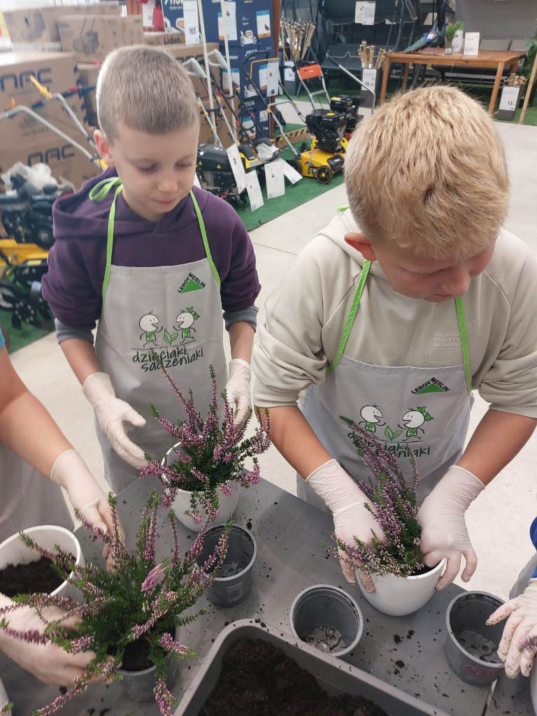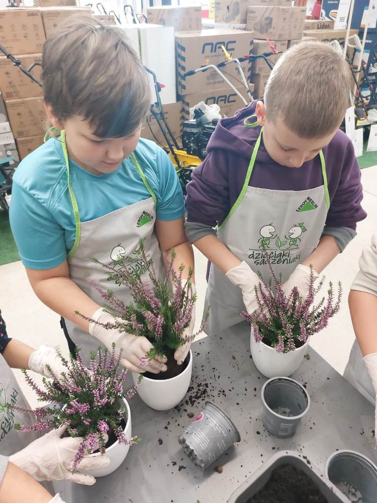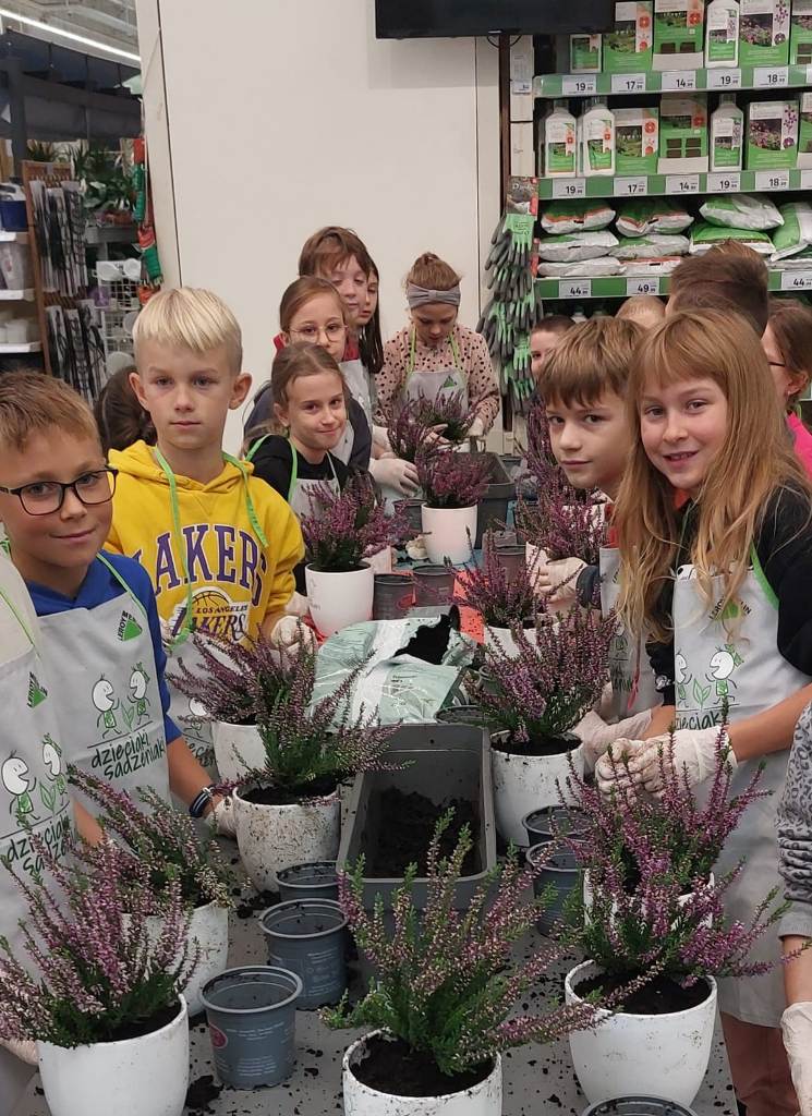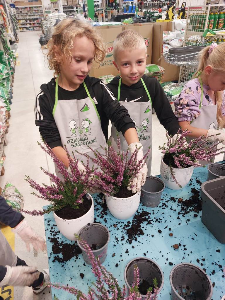 Każdy uczestnik otrzymał własną doniczkę, ziemię i sadzonkę – wrzos, którą własnoręcznie posadził. Atmosfera warsztatów była pełna radości, zaangażowania i dumy z wykonanej pracy. Udział w „Dzieciakach Sadzeniakach” był nie tylko świetną zabawą, ale także wartościową lekcją o odpowiedzialności i szacunku do natury.