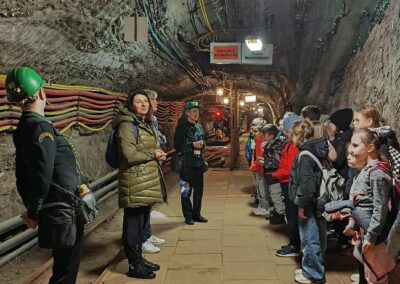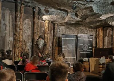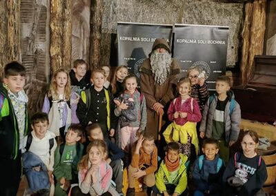 Podczas zwiedzania uczniowie przemierzali Trasę Turystyczną z Podziemną Ekspozycją Multimedialną, gdzie dzięki nowoczesnym technologiom poznali historię kopalni, dawne metody wydobycia soli oraz codzienne życie górników. Poznali również legendę świętej Kingi, patronki górników i fundatorki kopalni oraz wysłuchali historii magicznego pierścienia, dzięki któremu – według legendy – powstała kopalnia. Szczególnym momentem było spotkanie ze Skarbnikiem kopalni, który wprowadził dzieci w świat legend.