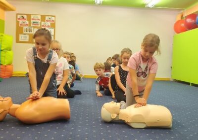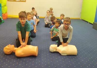 Zajęcia miały formę warsztatów prowadzonych przez ratownika medycznego. Dzieci poznały specyfikę pracy ratownika oraz nauczyły się, jak prawidłowo wezwać pomoc w razie wypadku, utrwaliły numery alarmowe, sprawdzały przytomność i oddech poszkodowanego, a także układały go w pozycji bocznej ustalonej oraz uczyły się wykonywać masaż serca u osoby poszkodowanej z użyciem fantomów. Uczniowie dowiedzieli się również, jak reagować w sytuacjach takich jak krwotok z nosa, wychłodzenie czy przegrzanie organizmu.