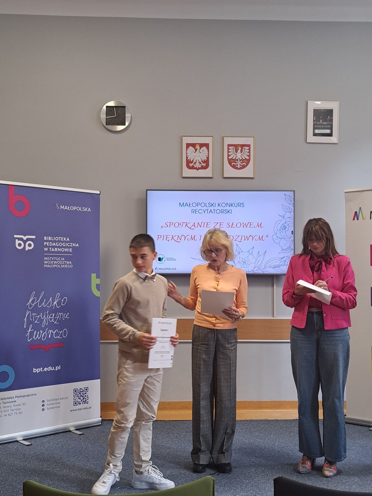 Z radością informujemy, że 21 listopada Miłosz został jednym z trzech Laureatów Małopolskiego Konkursu Recytatorskiego „Spotkanie ze słowem pięknym i prawdziwym”!