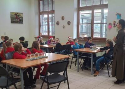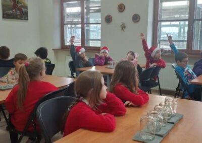 Uczniowie klas 2c, 2d i 3d mieli okazję przeżyć wyjątkowe chwile podczas warsztatów świątecznych w Galerii Panorama. Spotkanie stało się podróżą do pięknych tradycji Bożego Narodzenia – dzieci odkrywały ich znaczenie, a wspólna gra podłogowa pozwoliła utrwalić najważniejsze zwyczaje w radosnej atmosferze.