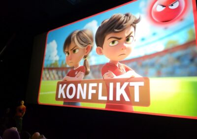 Pierwsza część spotkania poświęcona była zasadom dobrej komunikacji oraz ich przykładom w filmach animowanych. Uczniowie poznali znaczenie empatii, wzajemnego zrozumienia oraz różne sposoby postrzegania świata – symbolicznie przedstawione jako perspektywa żyrafy i szakala.