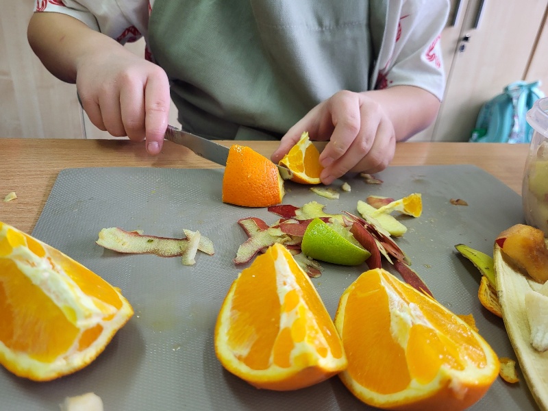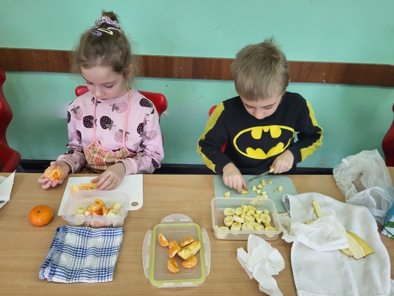 Czyste ręce to podstawa zdrowia, ponieważ dłonie przenoszą miliony bakterii i wirusów, dlatego wszyscy dokładnie je umyli przed przystąpieniem do pracy. Była to nie tylko pyszna, ale także bardzo zdrowa i pouczająca lekcja.🍎🍌🥝