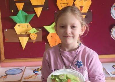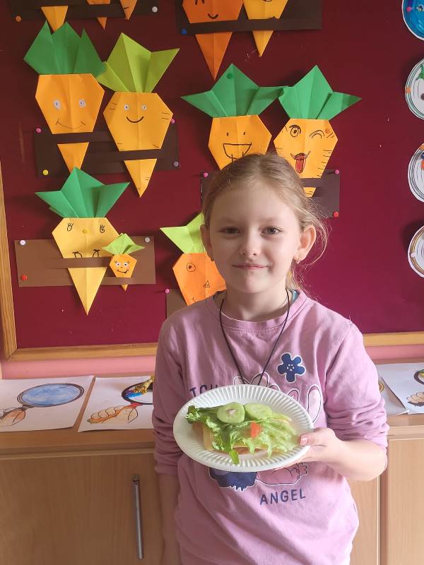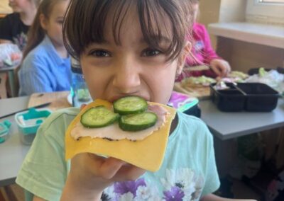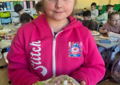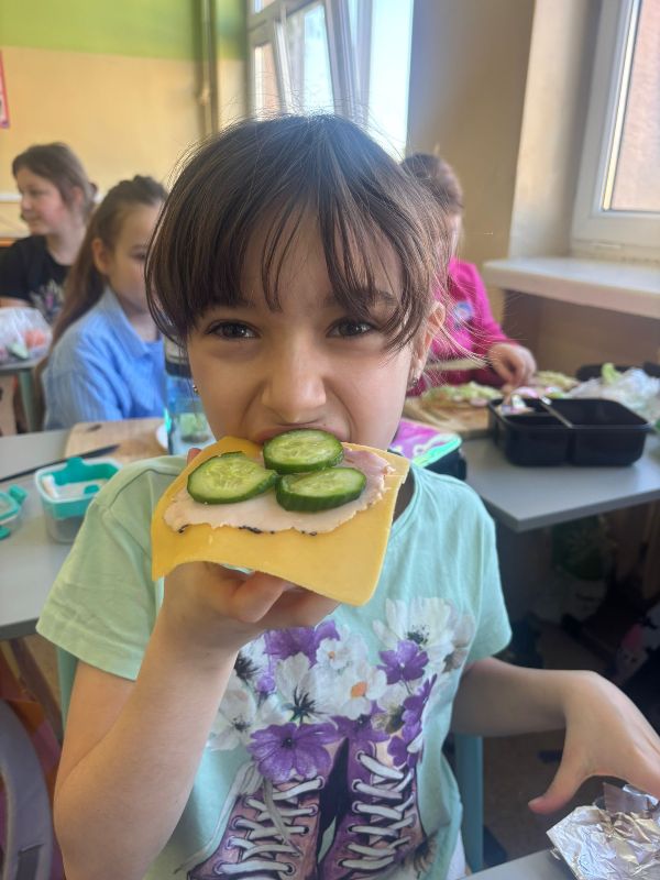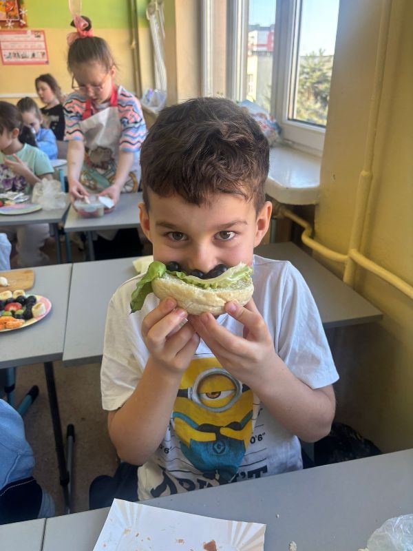 Warsztaty pokazały, że zdrowe jedzenie może być nie tylko smaczne, ale też bardzo kreatywne. Dzieci z uśmiechem prezentowały swoje kanapkowe arcydzieła.To były pyszne i pełne energii zajęcia, które na pewno na długo zostaną w pamięci naszych uczniów! 🌱💛