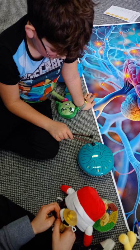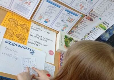 – Żonglowanie uwagą: Proste ćwiczenia ruchowe angażujące obie półkule naraz (ćwiczenia kinezjologiczne), co natychmiast poprawiło poziom skupienia w grupie.
