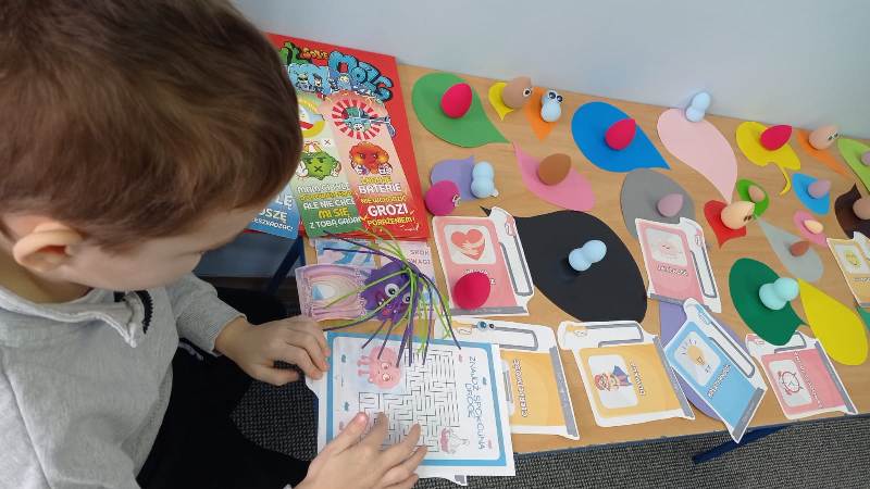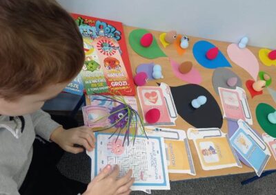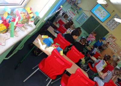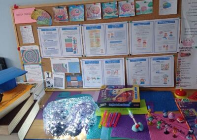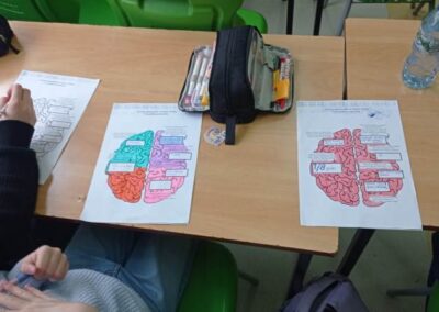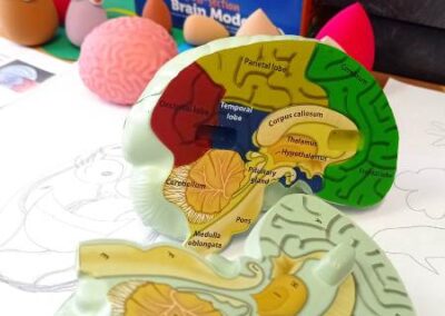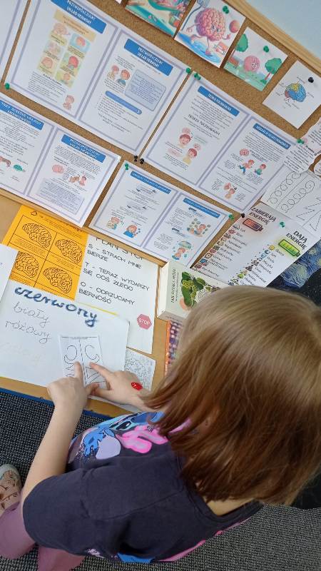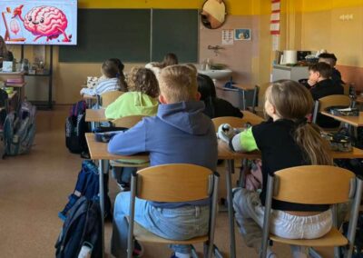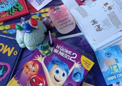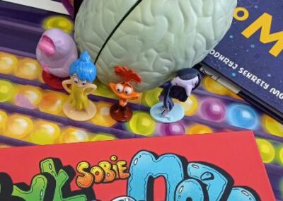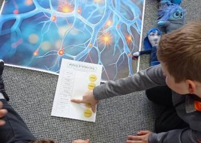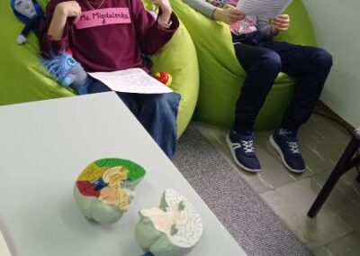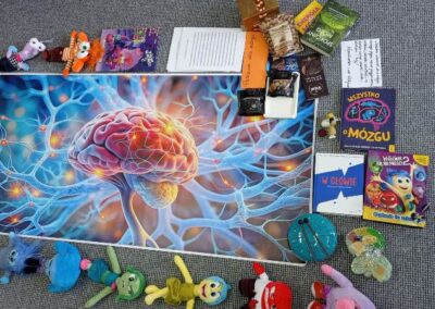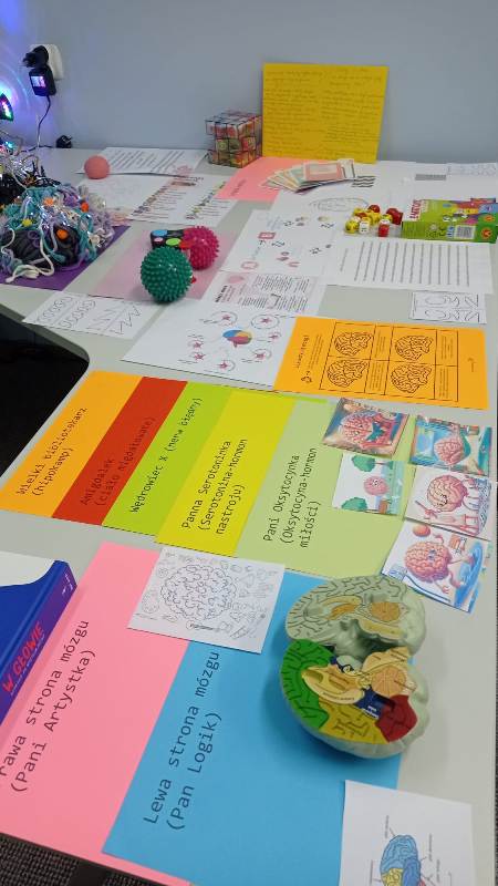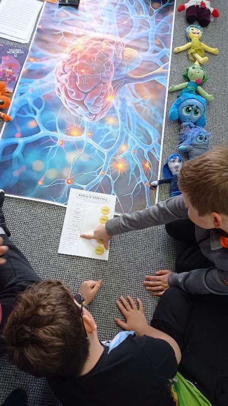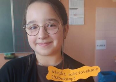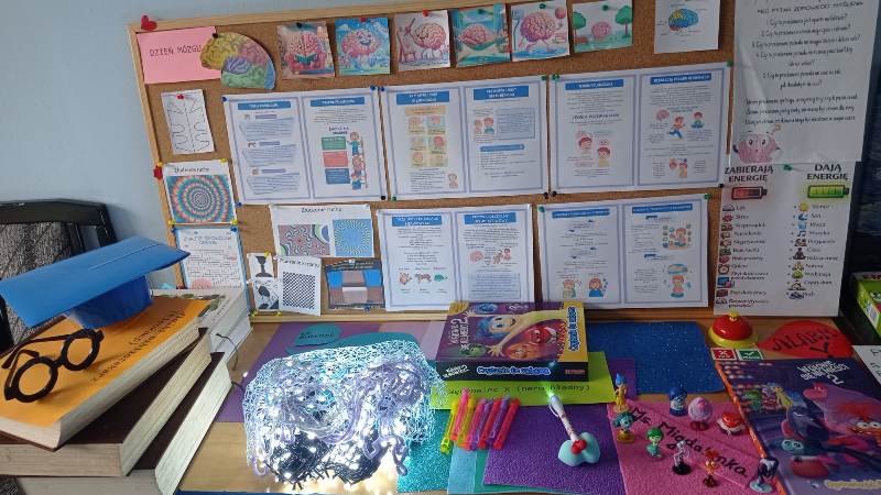Kreatywny Dzień Mózgu poprowadzone przez psychologa Katarzynę Augustyńską, było interesującą podróżą do wnętrza czaszki. Warsztaty stały się okazja do rozwijania świadomości i przypominania o znaczeniu zdrowia mózgu, które jest podstawą naszego funkcjonowania. Całość została zaprojektowana tak, aby skomplikowane procesy neurologiczne stały się zrozumiałe dzięki interakcji i zabawie. Uczniowie nauczyli się, jak można zarządzać stresem i emocjami (Spotkanie z Kapitanem Korą – Kora nowa i Ms. Migdalenką- ciało migdałowate) oraz sprawdzili, jak mózg interpretuje rzeczywistość oraz dlaczego czasami może ulegać iluzjom. Dzieci budowały sieci neuronalne poznając jak nasze myśli „biegają po głowie”. Nie zabrakło gimnastyki synaps- praktycznych technik koncentracji oraz uważności. Psycholog zaproponował serię ćwiczeń, które miały „obudzić” korę przedczołową, między innymi: