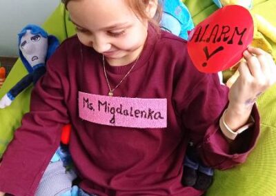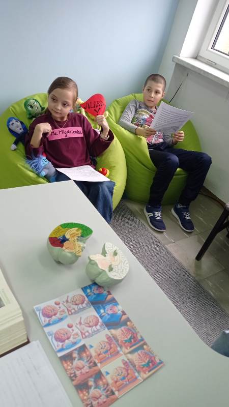 Pani Psycholog wspólnie z poszczególnymi uczniami klasy 4 zorganizowała także przedstawienie pt.”Wielka narada Ms. Migdalenki, Wędrowca X oraz Hipokampa w Centrum Dowodzenia”.