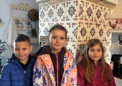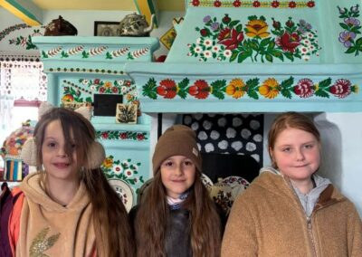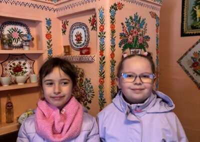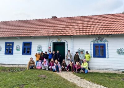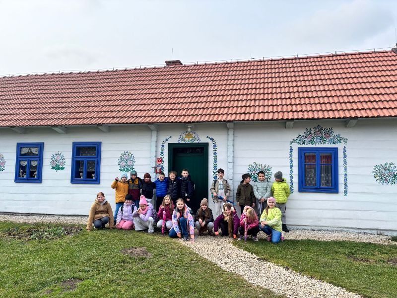 Na zakończenie odwiedziliśmy Zagrodę Felicji Curyłowej, gdzie uczniowie mieli okazję zobaczyć, jak dawniej wyglądały wiejskie chaty oraz jakimi narzędziami i urządzeniami posługiwano się w codziennym życiu.