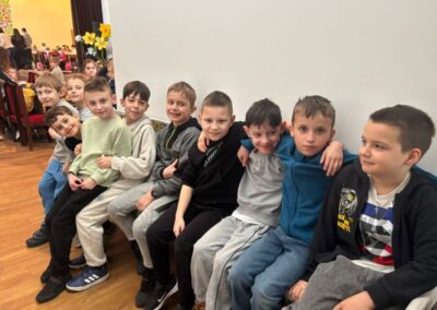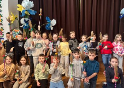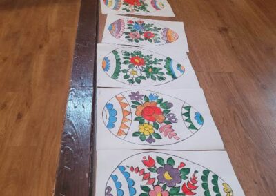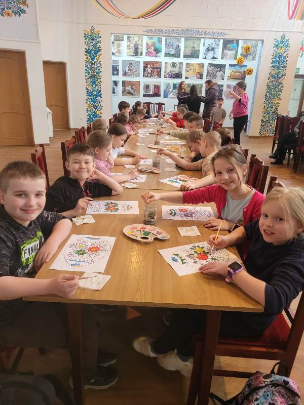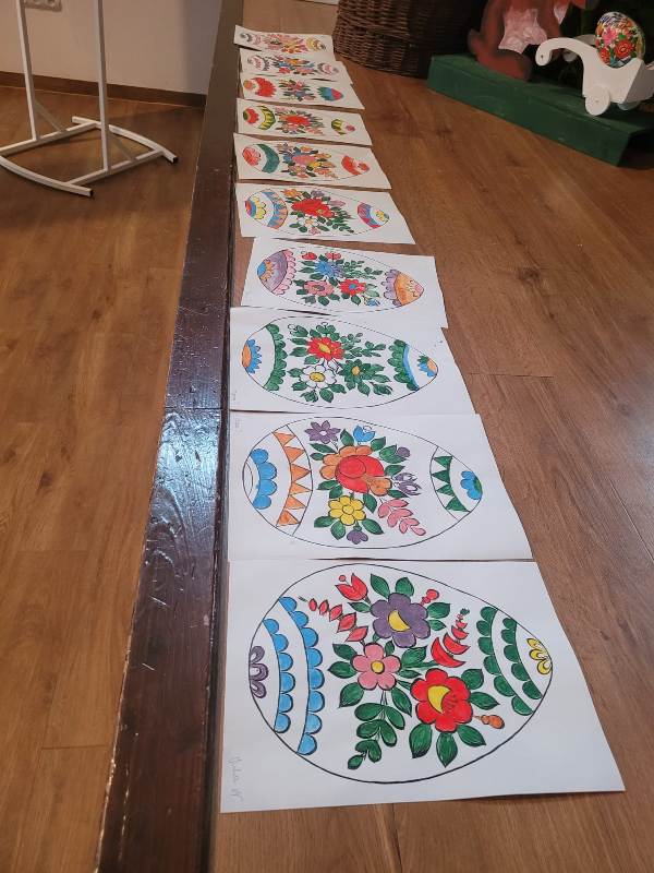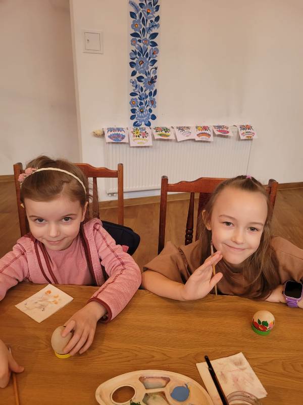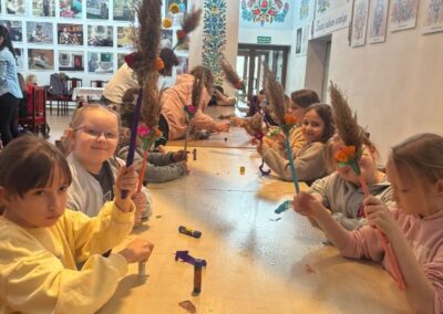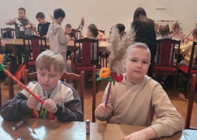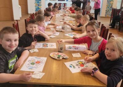 Podczas pobytu uczniowie wzięli udział w warsztatach wielkanocnych, w trakcie których z dużym zaangażowaniem malowali pisanki na papierze. Następnie kontynuowali pracę, ozdabiając drewniane jajka oraz tworząc własne, kolorowe palmy wielkanocne.