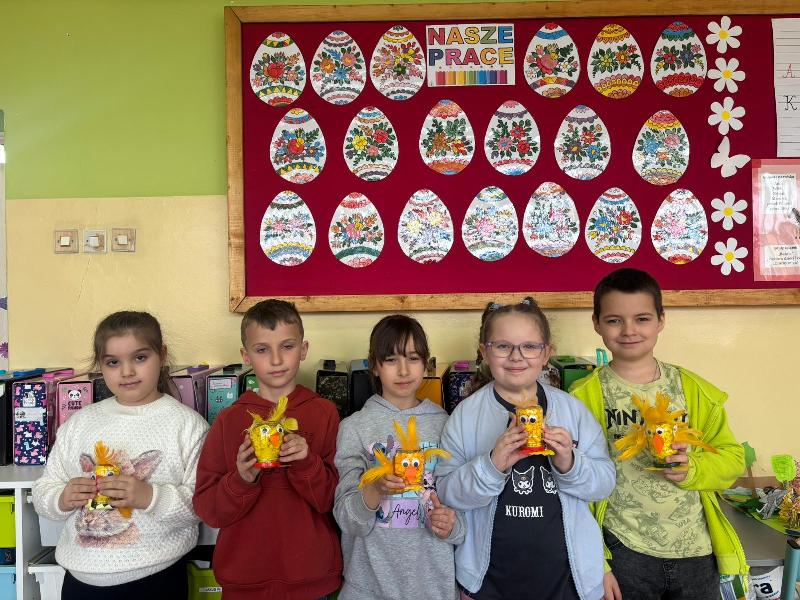 Uczniowie klas drugich w przygotowaniu do Świąt Wielkanocnych uczestniczyli w świątecznych warsztatach, podczas których tworzyli różnorodne ozdoby. Głównym motywem zajęć był kurczak, wykonywany na kilka ciekawych sposobów.