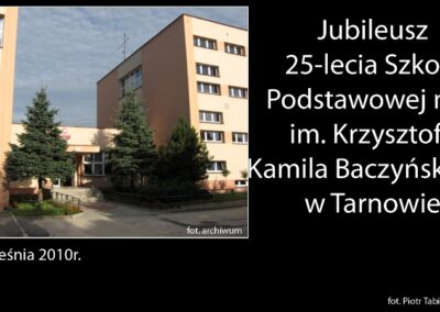 Jubileusz 25-lecia Szkoły odbył się 23 i 24 września 2010 roku. Swoją obecnością zaszczyciło nas wielu znakomitych gości, w tym byłych nauczycieli, absolwentów szkoły, rodziców i uczniów. W czasie tych uroczystości odsłonięto pamiątkową tablicę Patrona Szkoły – Krzysztofa Kamila Baczyńskiego.
